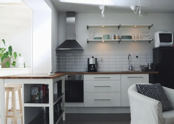 Gästerna kan laga sina måltider i ett utrustat pentry utrustat med ugn och diskmaskin. Busshållplatsen Ejdervaegen är belägen precis runt hörnet från på det 80 m² stora boendet.
